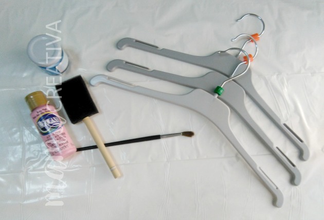 En el caso de hoy los materiales que necesitamos para decorar las perchas son: