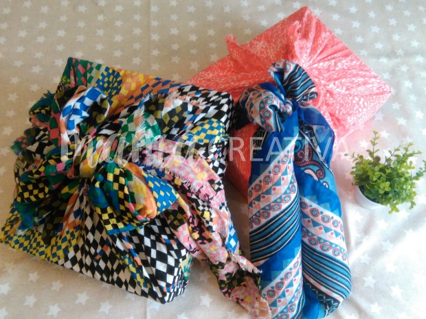 Tan sólo necesitaremos un trozo de tela o un pañuelo lo suficientemente grande para cubrir el paquete.