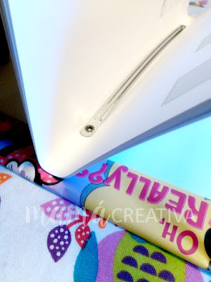 Cuando ya está forrada totalmente buscamos los agujeros de la carpeta y los abrimos en el forro y el papel ayudándonos de unas tijeras, para poder poner de nuevo la goma.