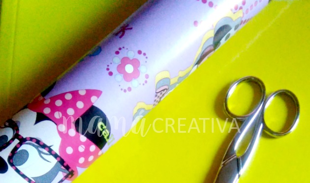 En este caso primero lo he forrado con el papel de regalo y a continuación con el forro de plástico para protegerlo.