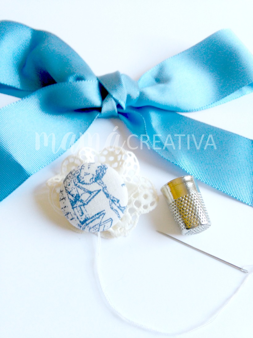 A continuación cosemos la puntilla de forma circular y lo unimos con una puntada al botón.